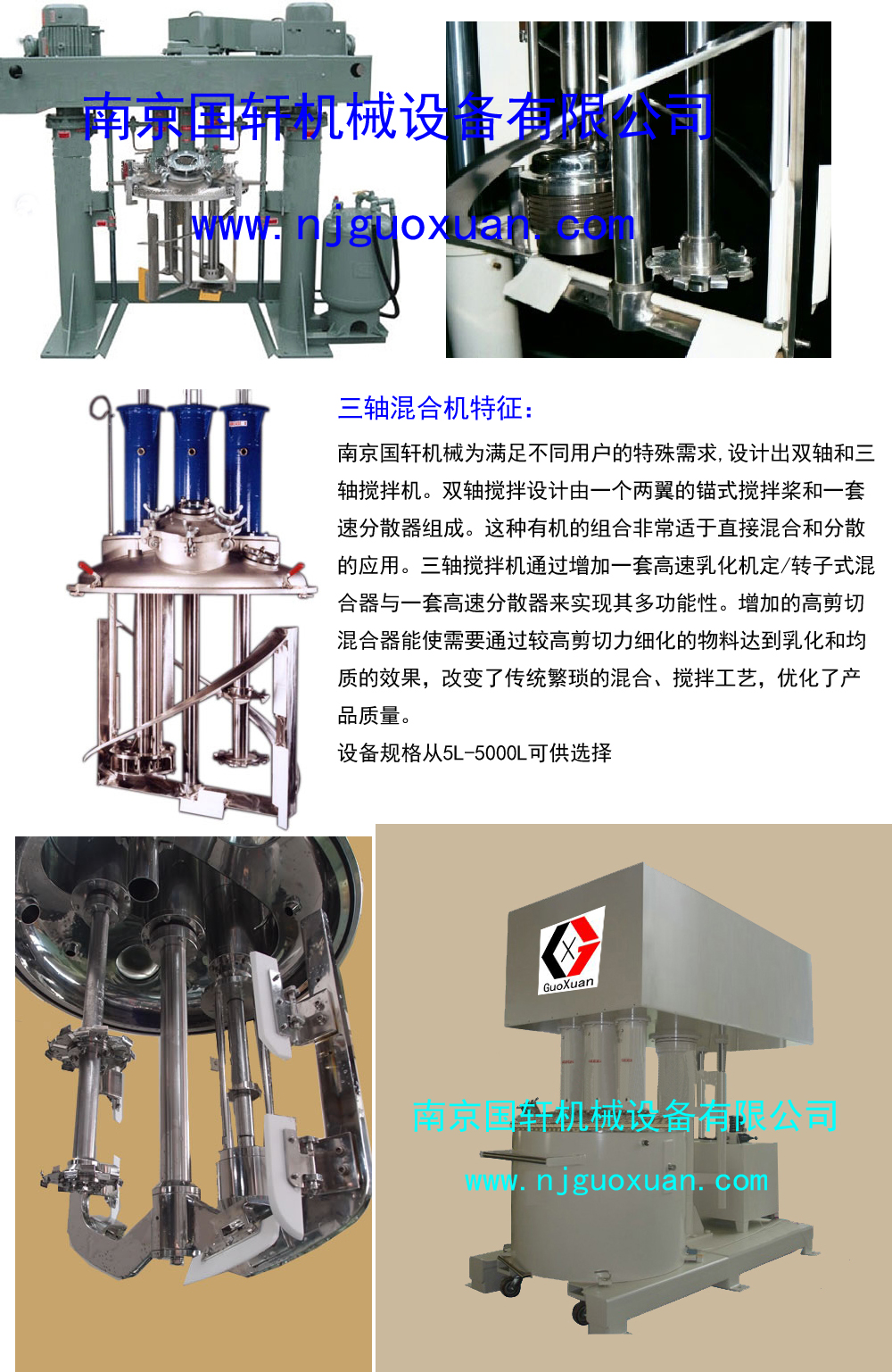 國軒機械設備有限公司位于素有六朝古都之稱:〖江蘇省省會城市南京〗公司專業從事工業攪拌機,行星分散機,雙行星混合機,三軸攪拌機,在線式混合機等設備的研發、生產、銷售為一體,產品定位于中高端,產品應用于:電池、高分子材料、焊錫膏、醫藥、化妝品、化工、膠粘劑、食品。顏料、染料和塑料等行業。公司擁有一批專業從事攪拌設備多年的優秀團隊。用現代企業的管理理念,致力于精細化管理和零缺陷作業的模式,立足于產品的質量管理......